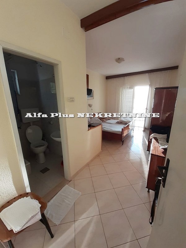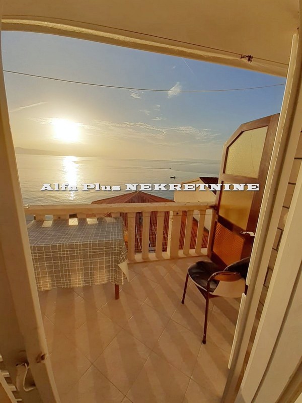 Prodaje se kuća smještena u manjem turističkom mjestu Makarske rivijere udaljena cca 25 metara od mora i plaže. Kuća je površine 360 m2 i sastoji se od prizemlja i dva kata, sve skupa povezano unutarnjim stepeništem. Prizemlju se sastoji od hodnika sa stepeništem koje povezuje prvi kat, dnevnog boravka, kupaonice i kuhinje sa blagovaonicom, na prvome katu položen je četverosoban stan koji se sastoji od dnevnog boravka, kuhinje sa blagovaonicom, kupaonice i četiri spavaće sobe te stepeništa koje vodi na drugi kat gdje se nalazi hodnik, kuhinja, spavaća soba sa kupaonicom i dva studio apartmana sa terasama južne orijentacije koje pružaju prekrasan pogled na more i otoke. Kuća je smještena na lijepoj lokaciji u centru mjesta i neposrednoj blizini plaže. Kuća je kompletno namještena i opremljena te je u funkciji turističkog iznajmljivanja sa pristojnim prihodima tako da budući vlasnik sa kućom može riješiti stambeno pitanje uz prihod od turizma. Kuća je kompletno namještena i opremljena te se može odmah preuzeti.