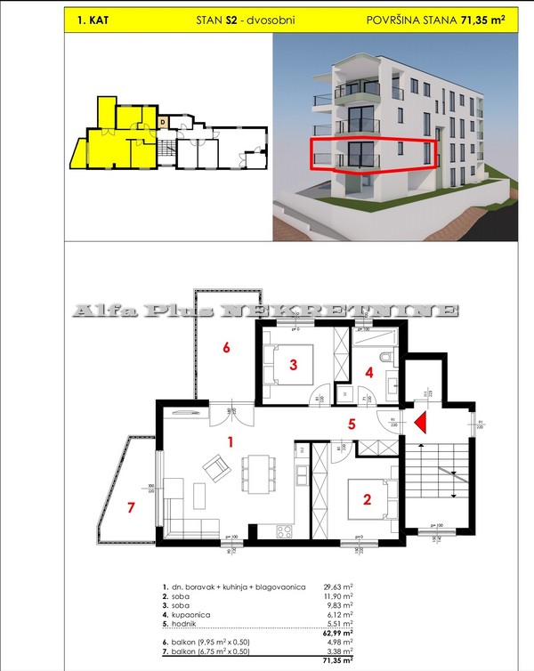 Dvosoban stan S2 površine 71,35 m2 x 3.400 Eura = 242.590 Eura